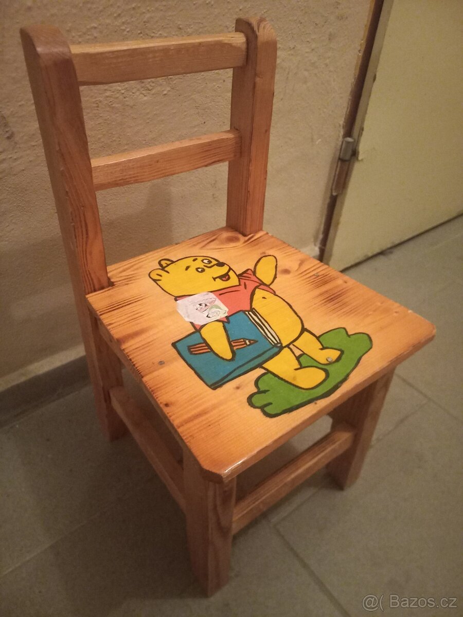 Prodám dětskou dřevěnou židličku s motivem medvídka Pú. Velmi málo použitá.