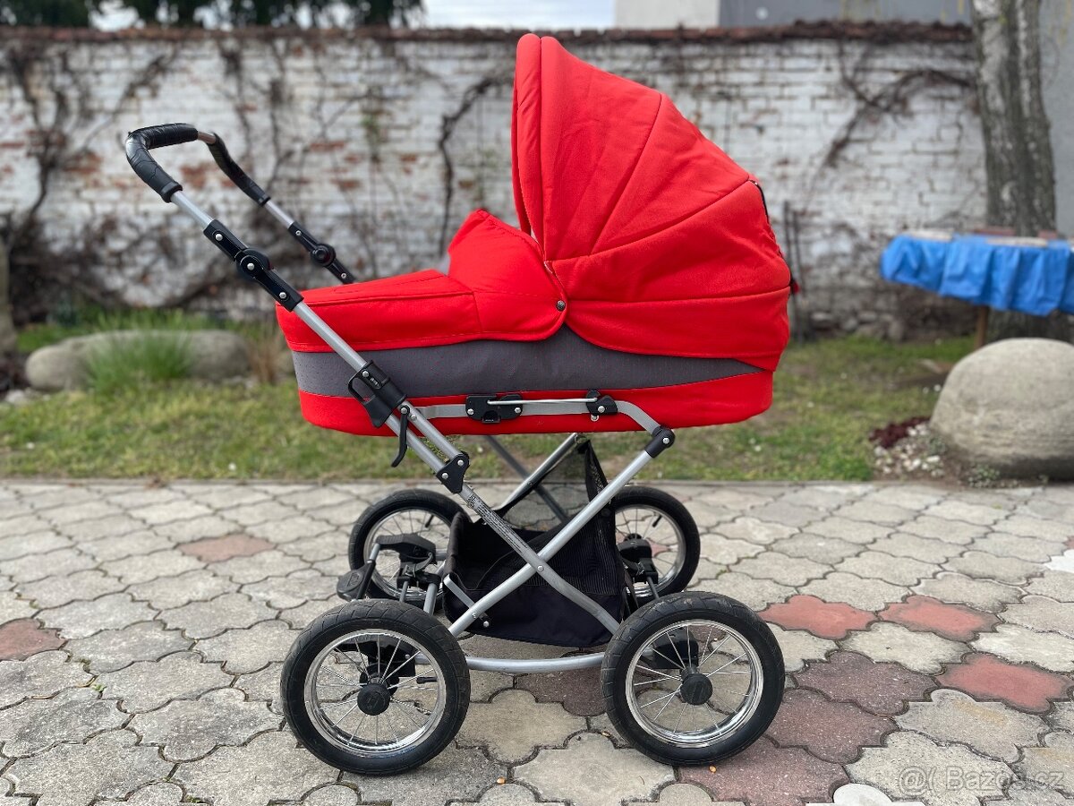 Kočár hluboký + sportovní Hoco - [26.2. 2026]Kočárek Hoco Austria, dvojkombinace: vložná taška pro miminko, zimní výstelka, sporťák s polohovatelnou opěrkou zad i nohou, 5ti bodové upínání, odepínací přední hrazda. Možnost jednoduchého otočení řídítek po či proti směru jízdy. Pevná X konstrukce ...