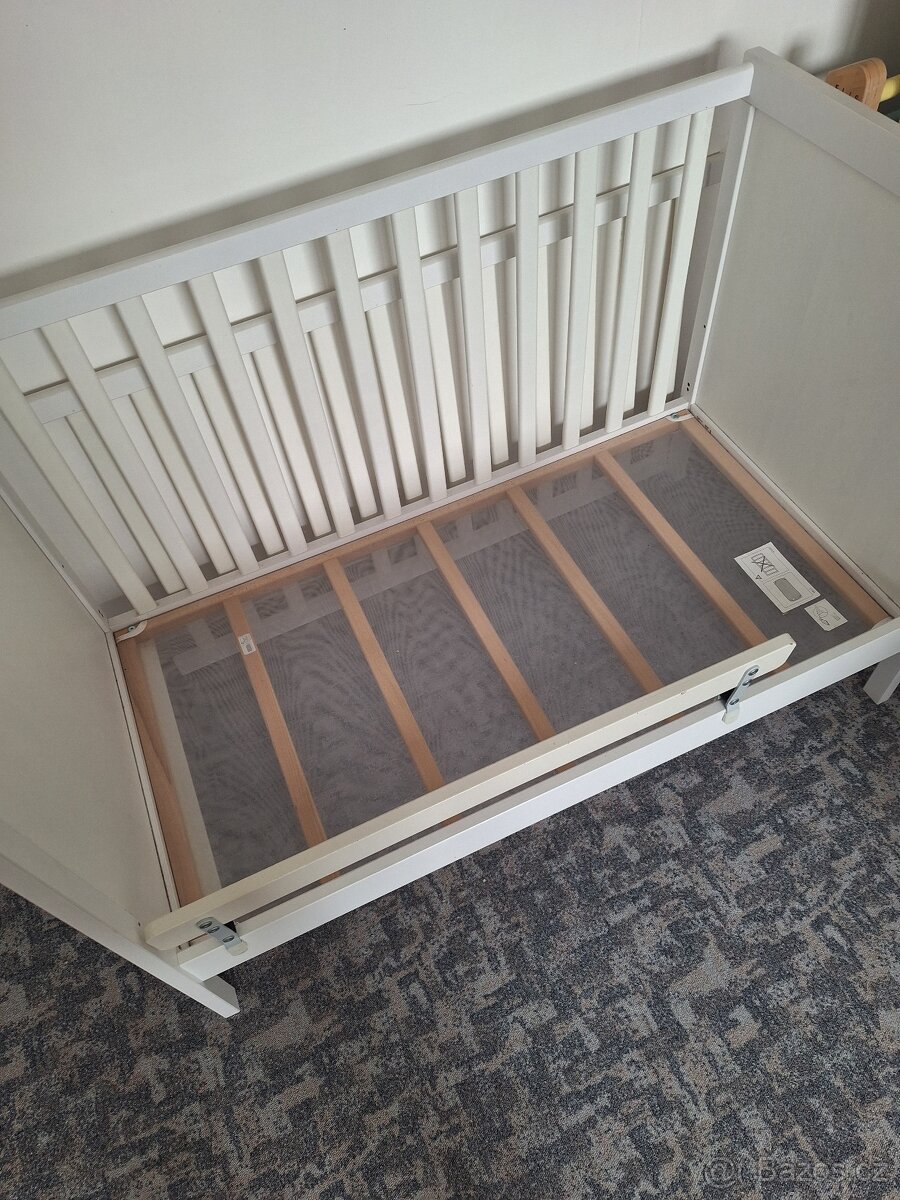 Prodám dětskou postýlku Sundvik 60x120. Postýlku lze přestavět do 3 poloh.