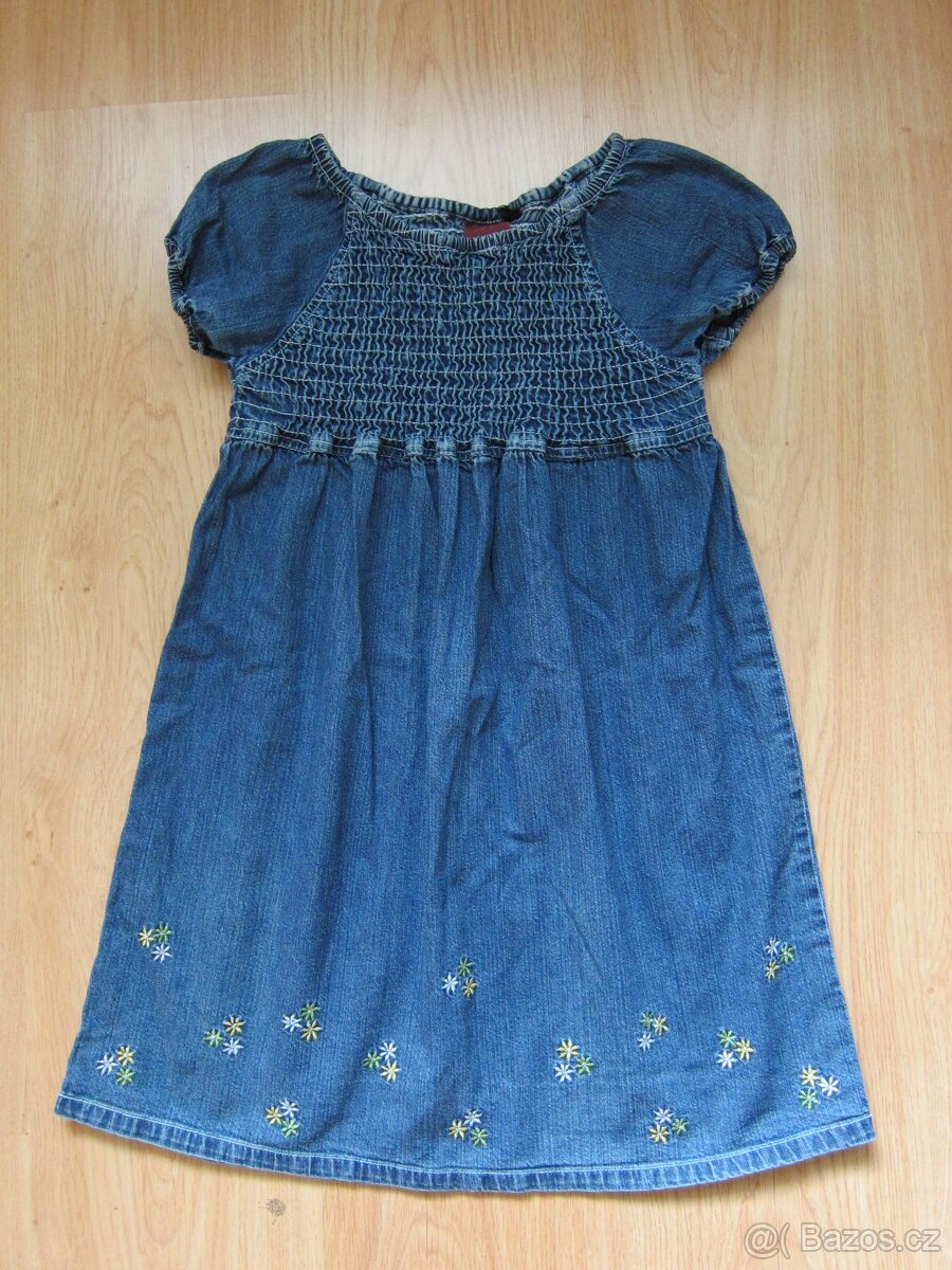 Dívčí šaty riflové (džínové) vel. 116-122, velikost psaná 5 let, ale ve skutečnosti trochu větší. Šaty nové, jen oprané. Značka Trader.