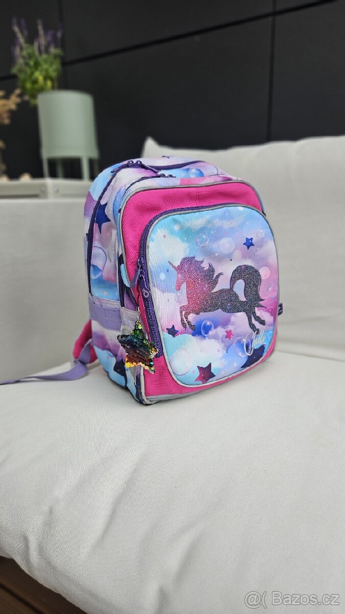 Batoh neváží ani kilogram (880 g), proto je ideální pro holky od první až do třetí třídy ZŠ.