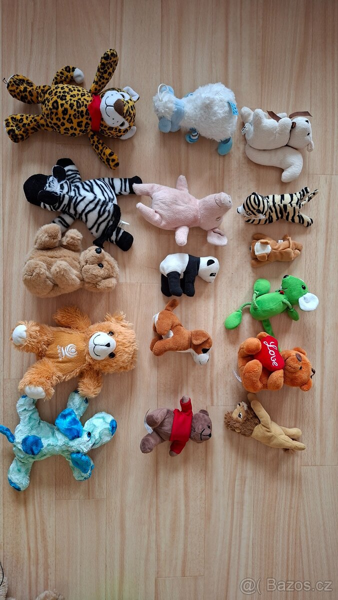 Prodám set menších 16ti plyšáků, pěkně pasují do ručičky, největší cca do 16 cm. (Prasátko a lev jsou tuším z Ikea)