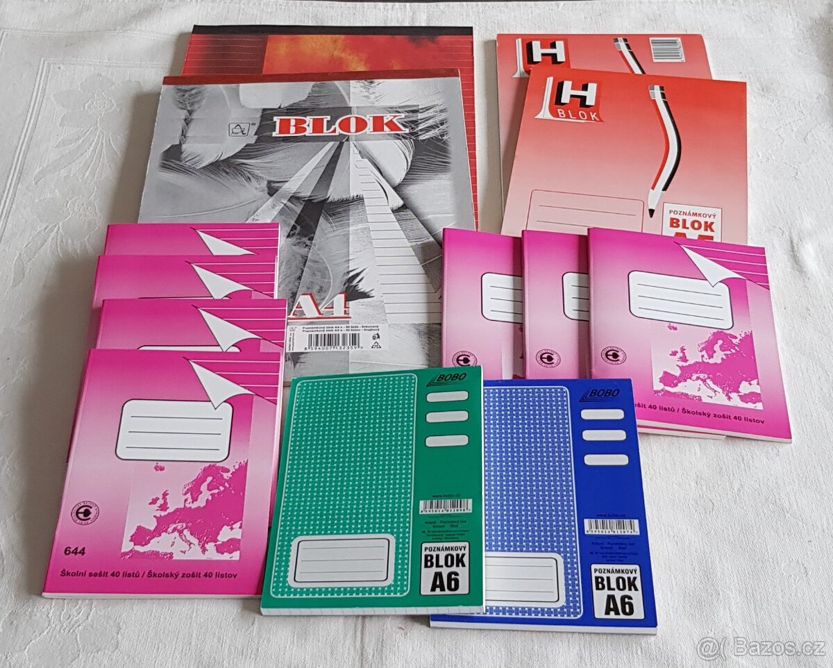 Prodám několik nových bloků různých velikostí a malé sešity (slovníčky) které již neupotřebíme: