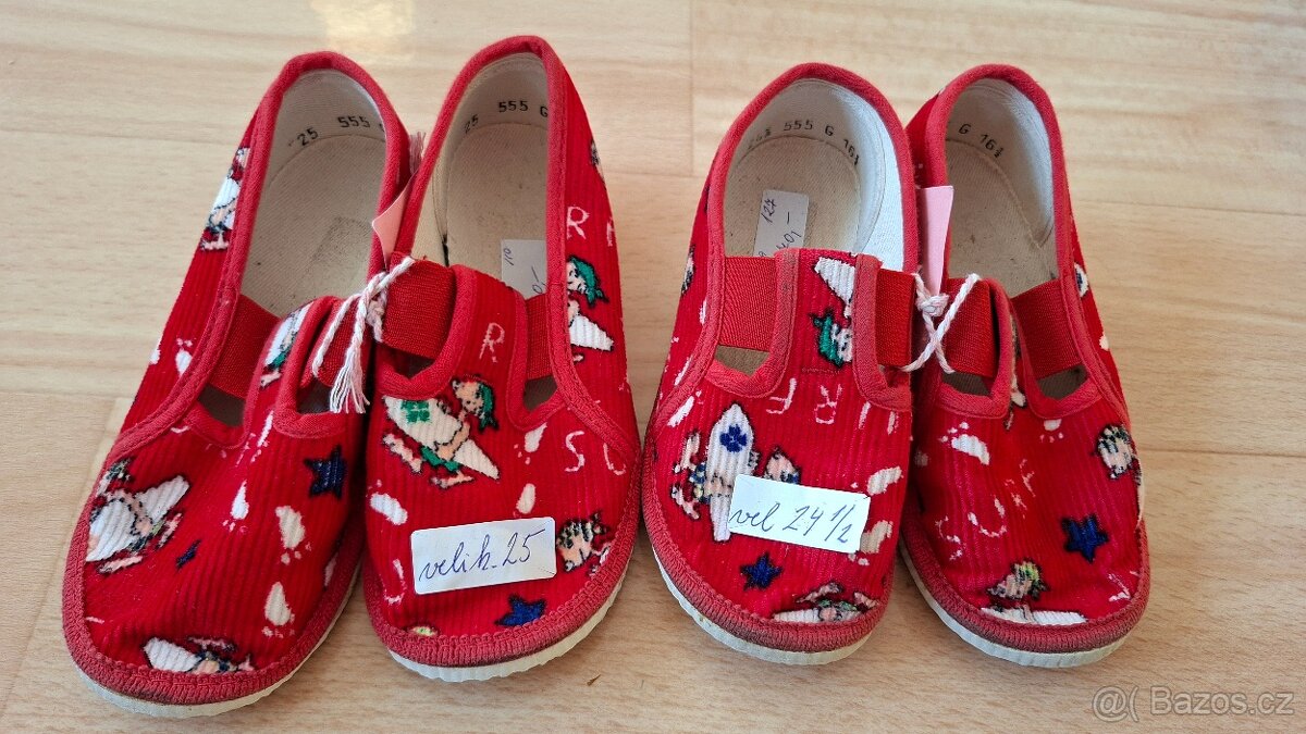 Prodám papučky velikost 24,5 a velikost 25. Velmi dobrý stav, byly u babiček.