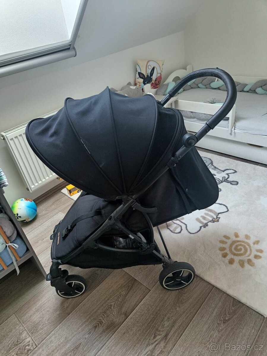 Sportovní kočárek Baby Monsters . Odpružená pěnová kola, polohovací široké XL sedátko, lze do úplného lehu, polohovatelná opěrka nohou. Ochranný faktor UPF 50+. Skladný kočárek, měli jsme ho jako druhý na cesty do města. Trošku odřené madlo, jinak je jako nový. Původní cena 7000.