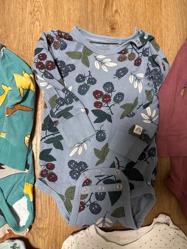 6x body, k fialovému body jsou i legíny, horní tři a spodní modré body v pěkném stavu bez fleků a dírek, bílé tečkované a kočičkové body mají flíčky - viz foto, přidávam na donošení