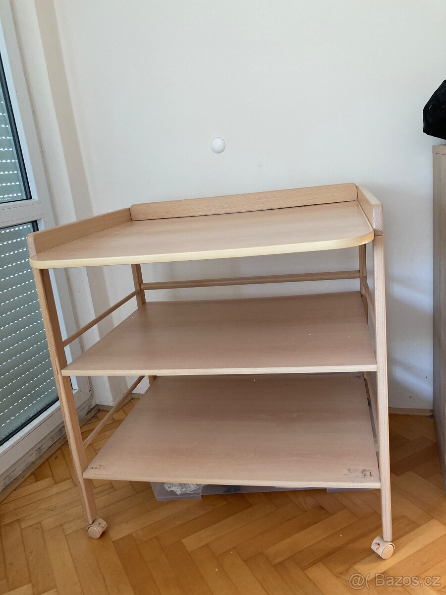 Pojízdný, všechna kolečka se dají zabrzdit. Rozměry: šířka 82cm užitná plocha, 86,5 celkem.