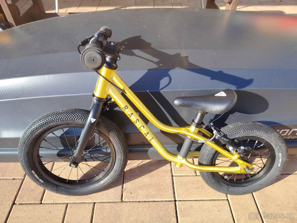 Prodám toto extra lehké odrážedlo Rascal, barva zlatá. Je v top stavu, jen minimum lehkých odřenin viz foto. Kupované nové (pořizovací cena 5900,-), syn na něm jezdil ve dvou letech jen jednu sezónu a pak hned přešel na šlapací kolo 14", krásně se na něm naučil balanc. Vhodné od 2 let /80cm. Velkou výhodou je že má omezovač proti přetočení řídítek a přední ruční brzdu uzpůsobenou pro malé ručičky. Osobní odběr Řitka, popř po domluvě Praha a okolí.