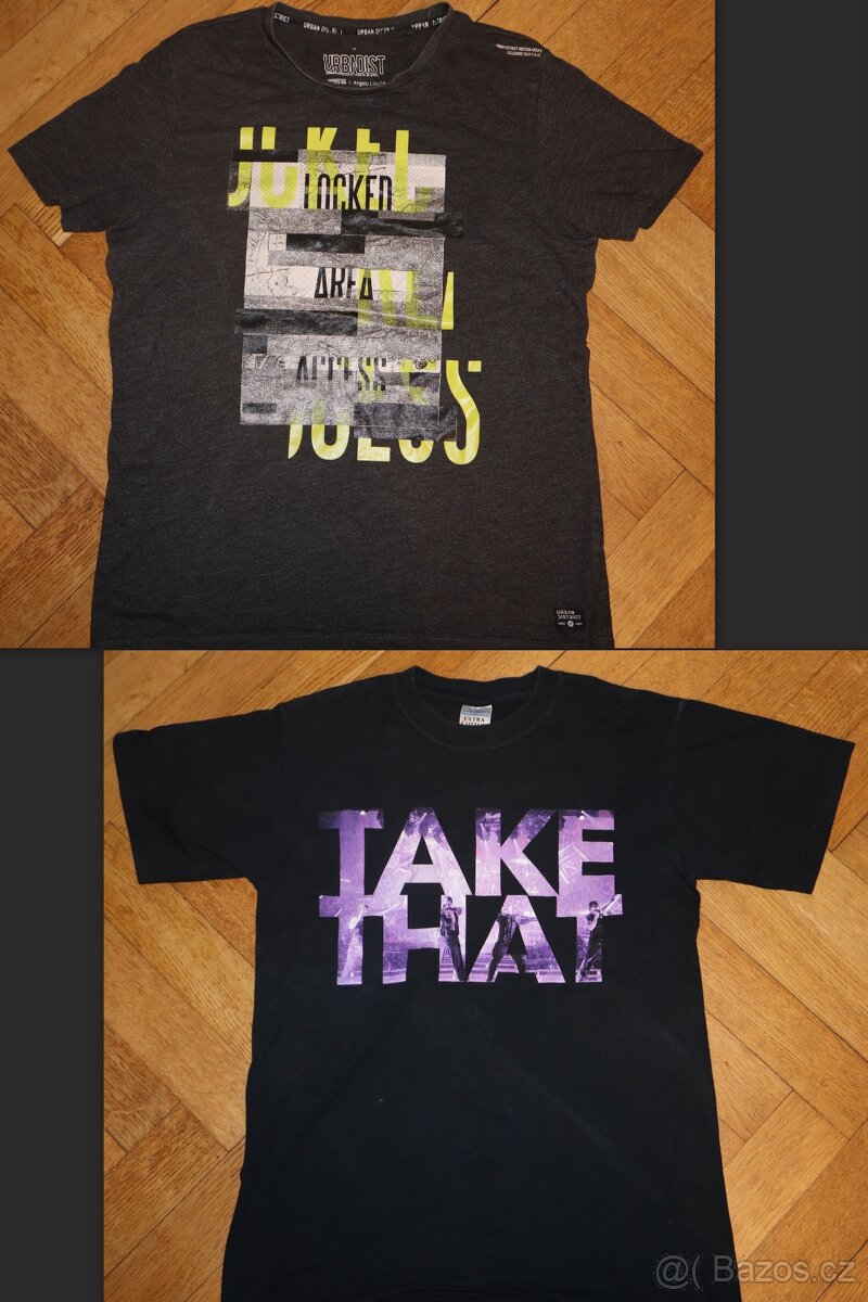 1. Černé značkové tričko s potiskem vel.170 je za 79Kč,