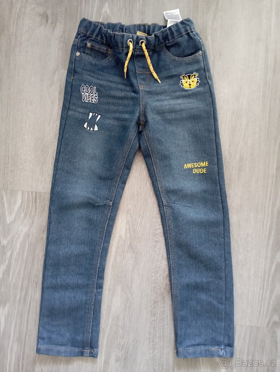 Dětské rifle Kik, vel. 122 - [26.2. 2026]Párkrát nošené dětské rifle zn. Kiki & Koko, Kik. Nastavitelný pás. Složení 60% bavlna, 40% polyester.