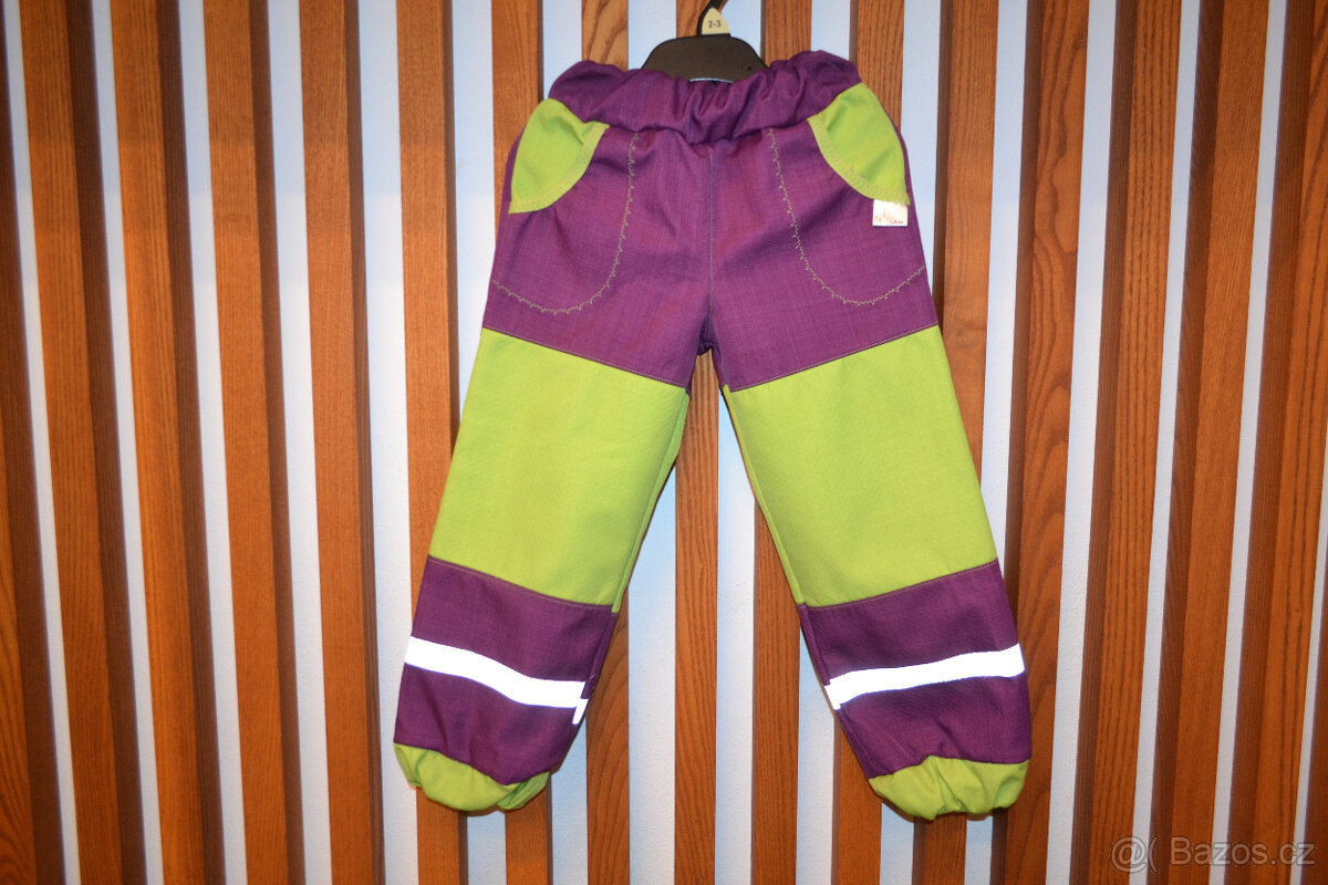 Nabízím nošené softshellové kalhoty vel. 104. Délka 60 cm, délka vnitřní nohavice 43 cm, pas 2 x 23 - 29 cm. . Dvě boční kapsy. Sleva na sety.