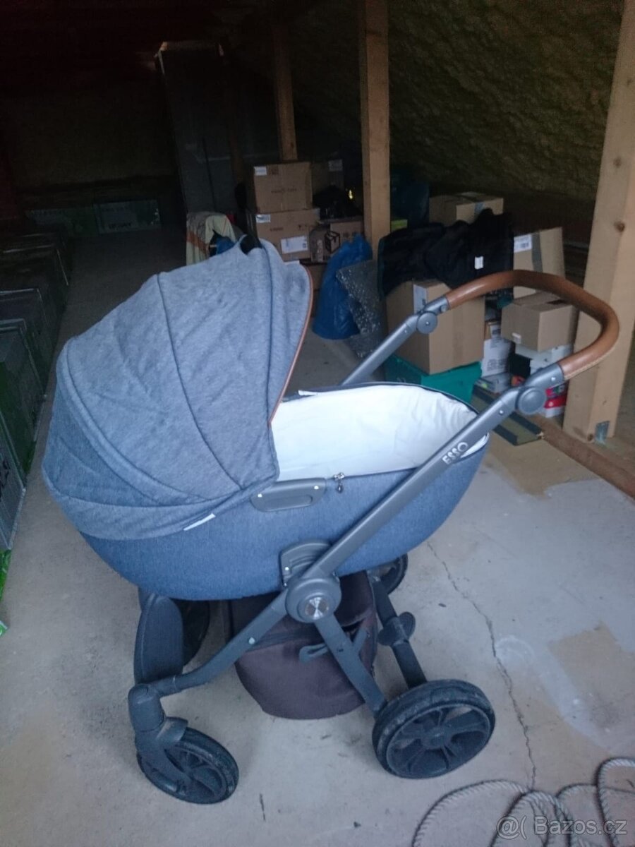 Dvojkombinace s adaptérem na autosedačku. Příslušenství: pláštenka, taška na kočárek a mosqitiera. Kočarek je po jednom dítěti.