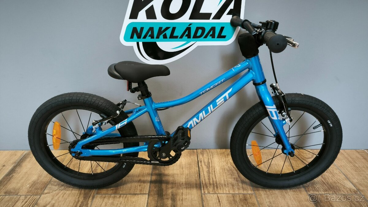 Nové dětské kolo české značky Amulet, ve třech barevných provedení, kola průměr 16" rám Al. pevná vidlice Al. kolo je vybavené přední brzdou V-brake a zadní protišlapnou brzdou (torpédo). Váha 7,2kg. Pro děti velikosti cca 90 - 110cm. Součástí kola jsou i pomocná kolečka. Doporučená cena 5.999,- sleva -10% cena 5.399,- Kolo je seřízené skladem na prodejně ihned k odběru.