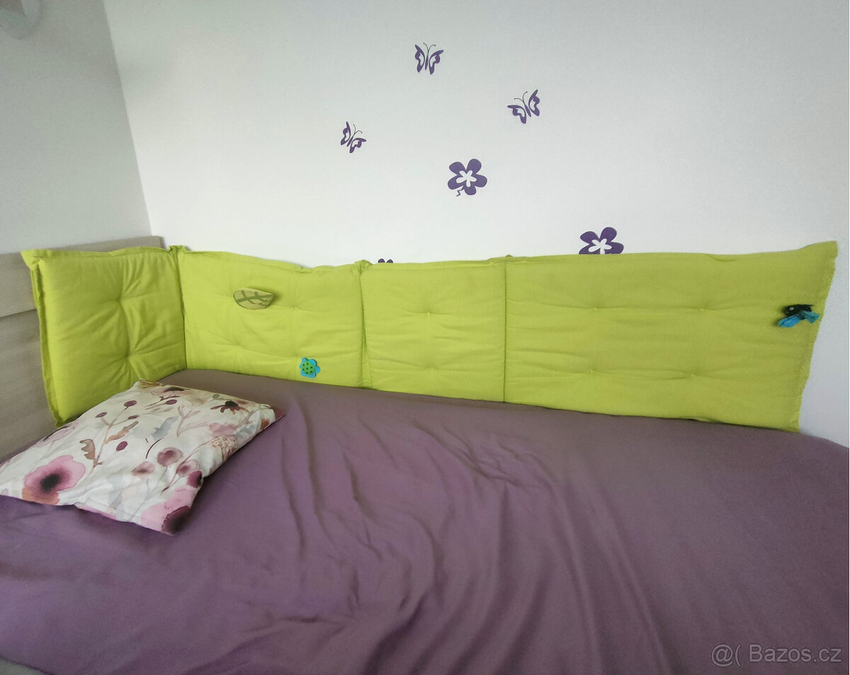 Nabízím zelený mantinel k dětské posteli - délka 230 cm, výška 47 cm.