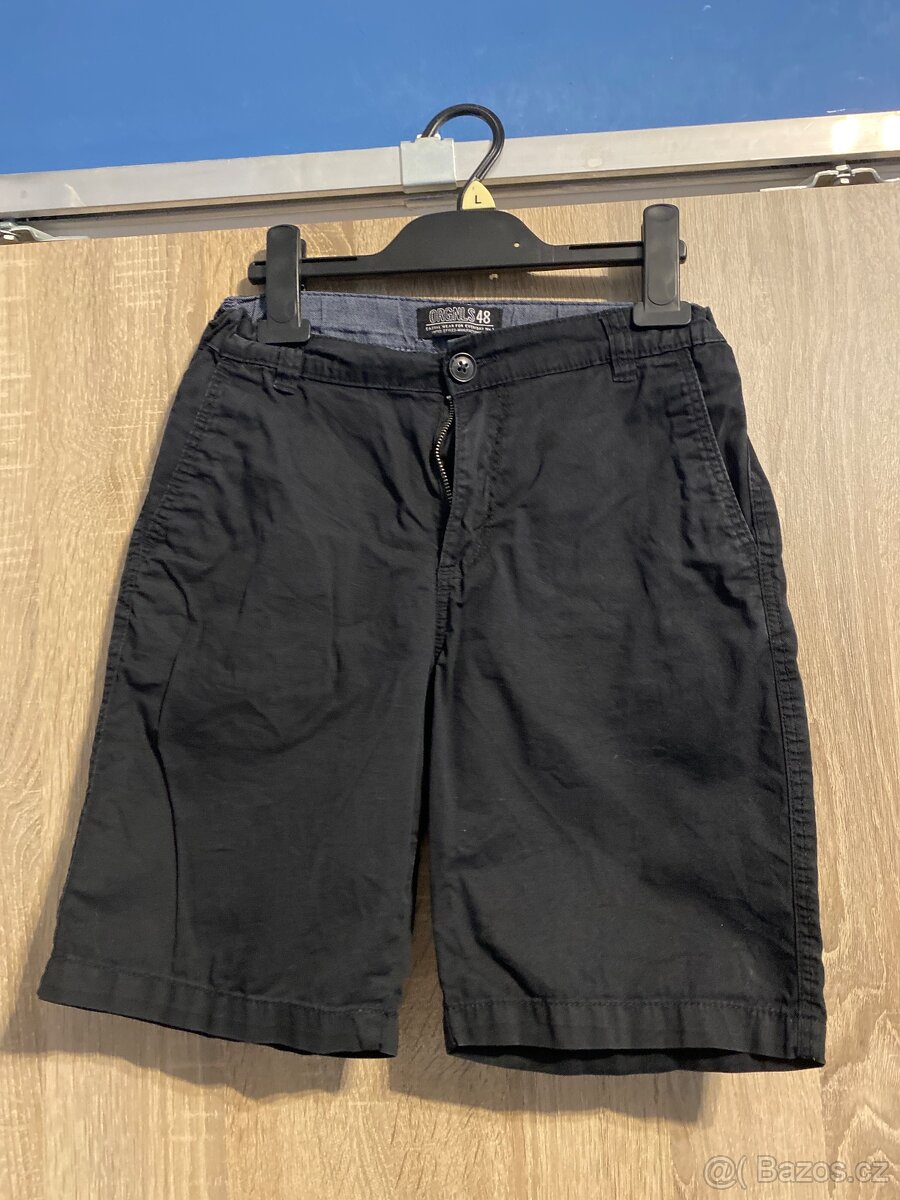 Prodám černé plátěné kraťasy HM, vel. 152, vnitřní zužování v pase. Zadní kapsa falešná
