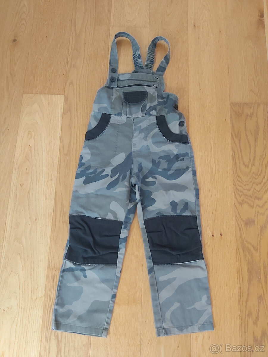 Prodám dětské maskáčové kalhoty s laclem, vel. 120. Posílám poštou a Zásilkovnou.