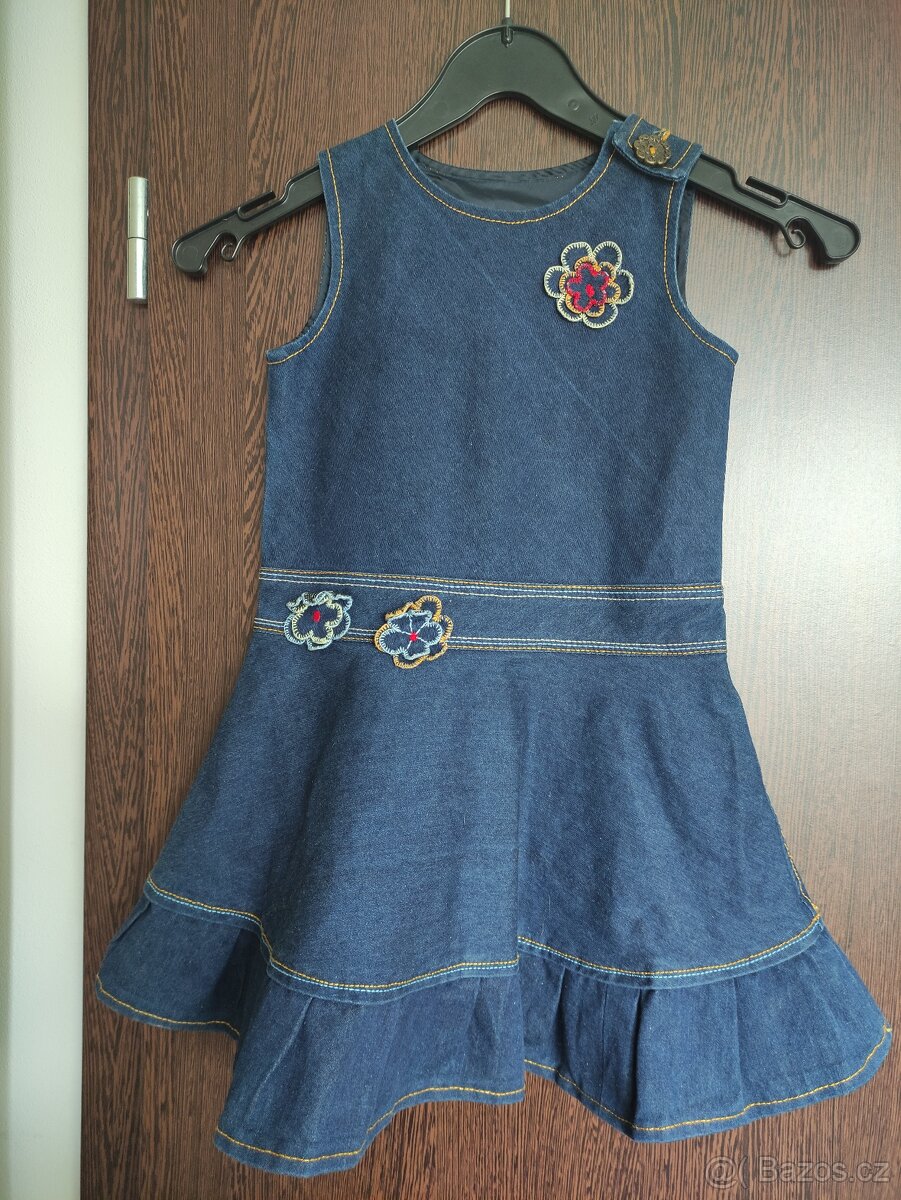 Prodám riflové šaty vel. 2 - 4 , rozměry - horní obvod 62 cm, pas 62 cm, délka 61 cm. Stav velmi dobrý.