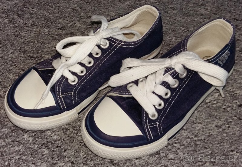 Prodám nenošené riflové plátěnky. Uvedená velikost 29, stélka měří max. 18,5 cm. Vady: gumové špičky časem popraskaly (viz poslední foto). Jinak bez vad. Dostali jsme, ale syn už neunosí.