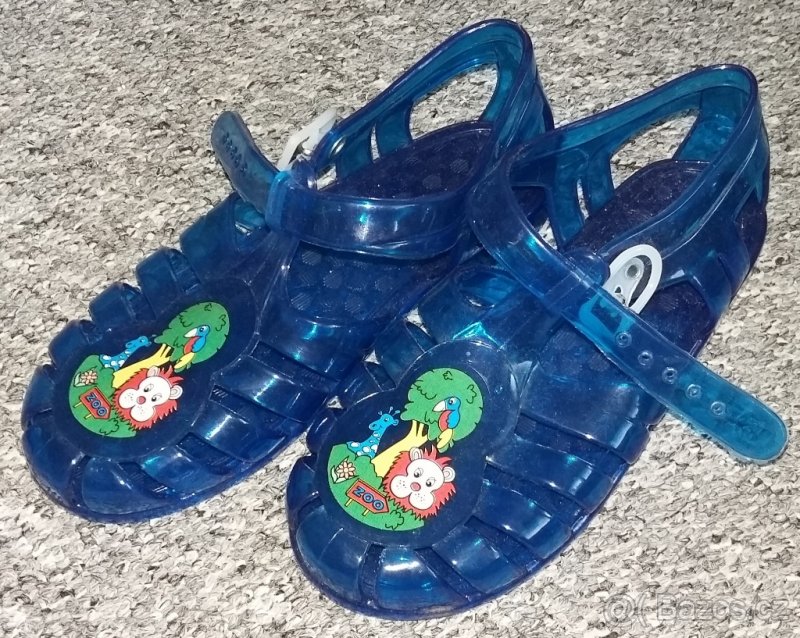 -Gumové pantofle modré s dinosaury, vel.30. Cena 15Kč ...