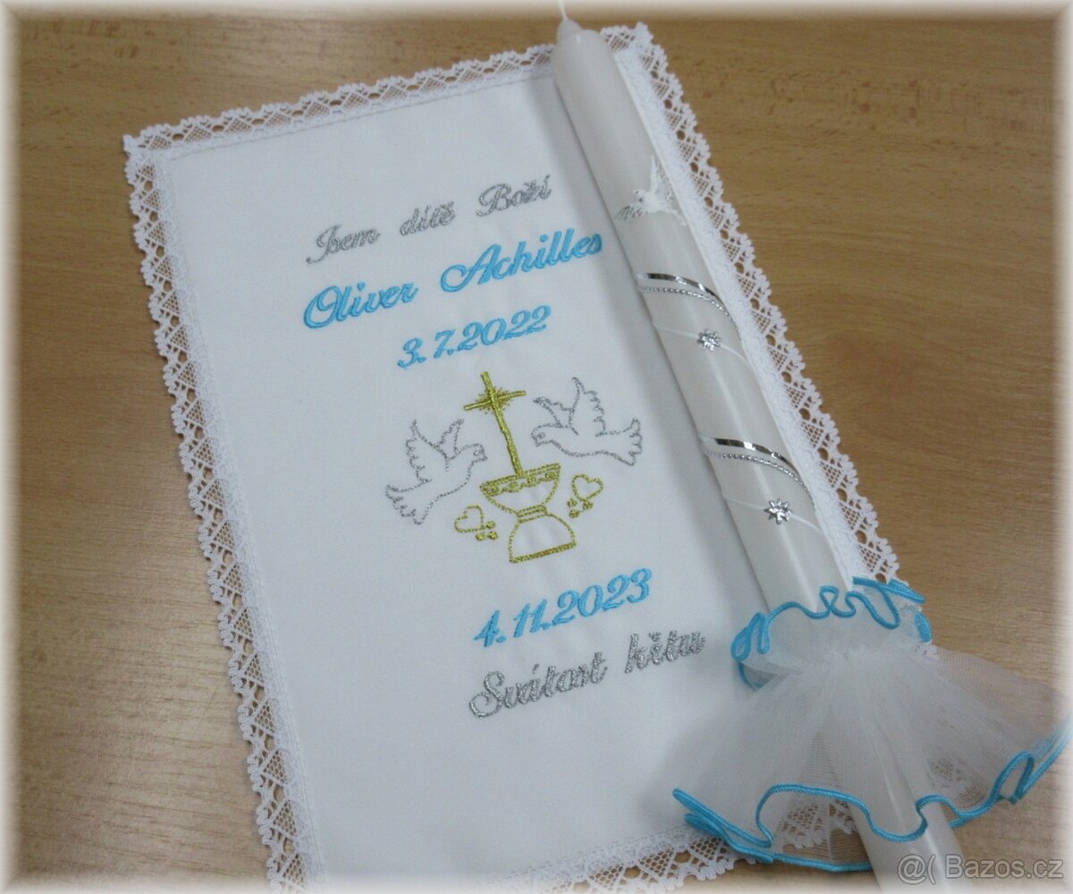 Křestní roušky a svíce - [3.3. 2026]Vyšívaná křestní rouška s krajkou- jména, data dle zadání.