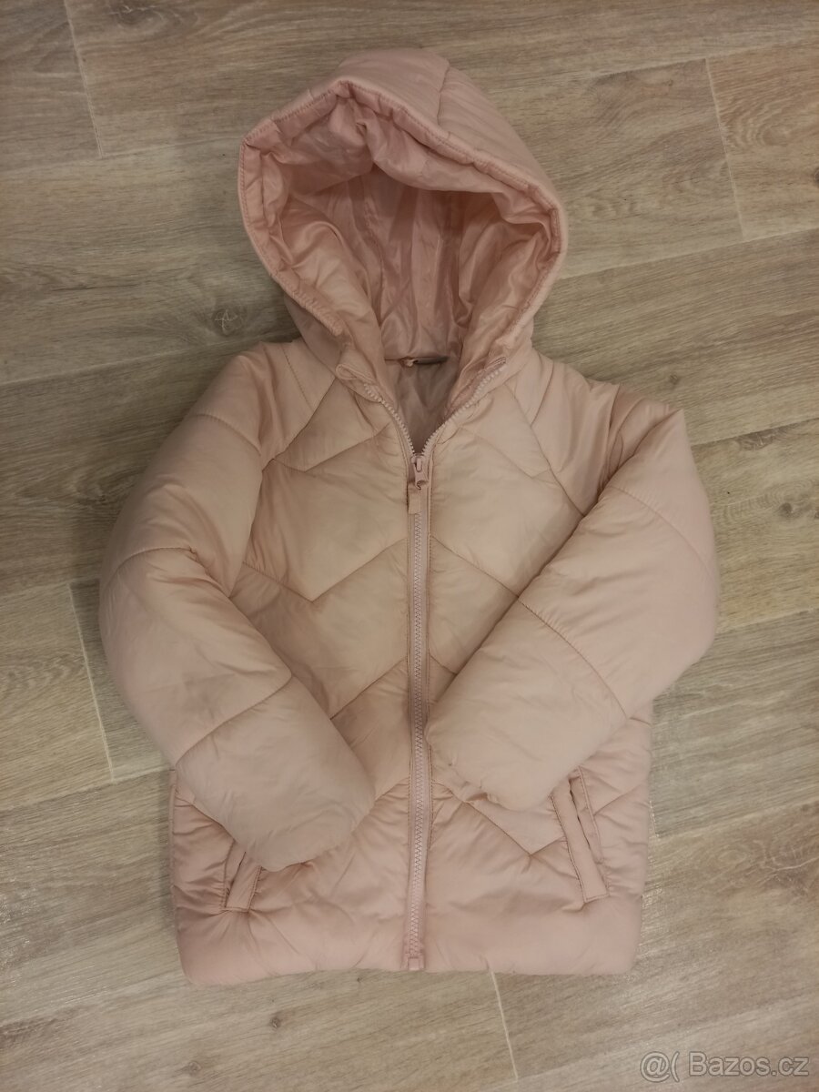Dívčí zimní bunda vel. 128, nošená, flek na rukávu, pravděpodobně půjde vyčistit.