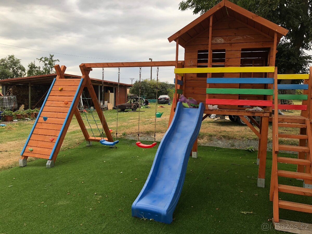 Detske hriste vez skluzavka - [12.1. 2026]Prodam detske hriste,věž se skluzavkou (delka 3m) a houpacky. Na věži tabule na malování,zebrik,horolezecká stena,abeceda,cislice,volant,telefon,úchyty,splhaci lano,zebrik,houpaci kruh. Výška věže 3.5m,výška podesty 1.5m,výška horního kulace na houpa ...