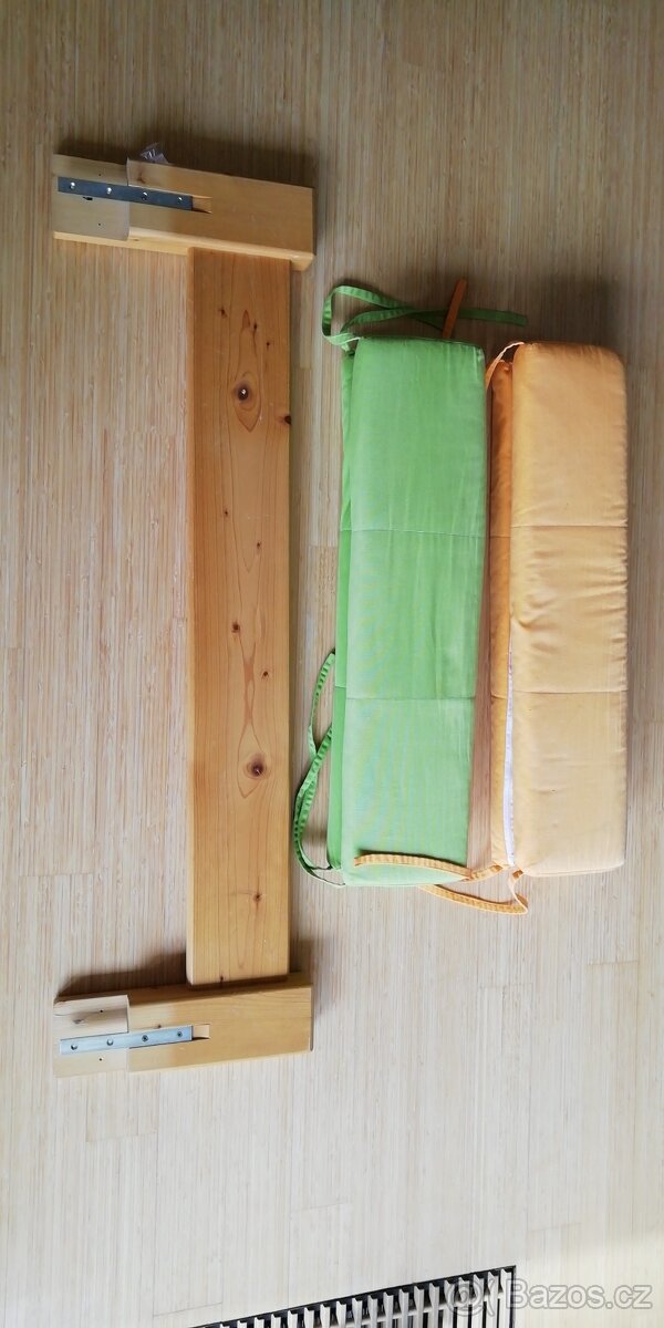 Prodám kvalitní dřevěnou zábranu k dětské posteli včetně molitanových zábran viz foto.Český výrobce Gazel, zábrana k posteli Sendy, lze ji použít i k jiným postelím (zábranu jsme měli nasazenou na desce tloušťky 24mm). Délka zábrany 120cm.Prosím kontaktujte mne pouze na mobilu. Děkuji.