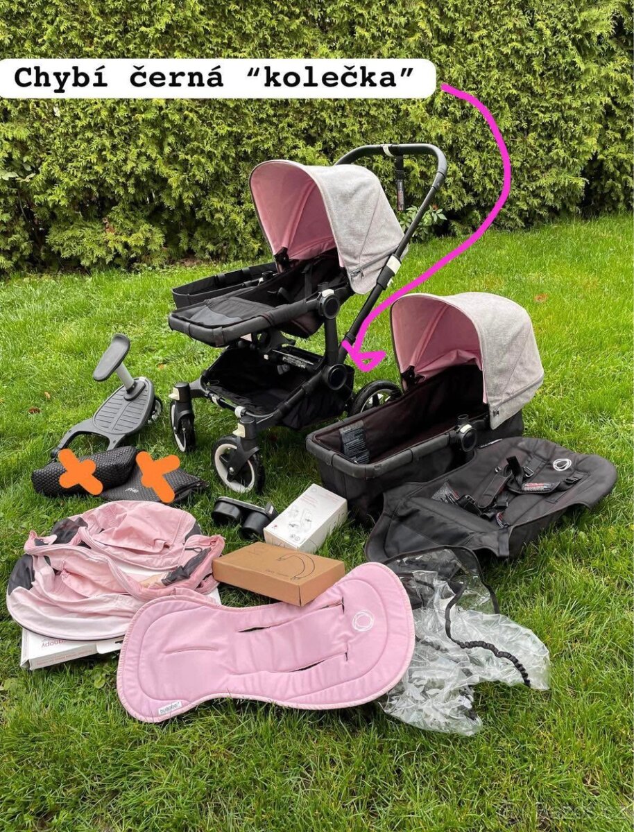 Bugaboo donkey - [25.2. 2026]Prodám oblíbený kočárek Bugaboo Donkey – ideální pro sourozence. Kočárek je plně funkční, s bohatým příslušenstvím, jak vidíte na fotce.