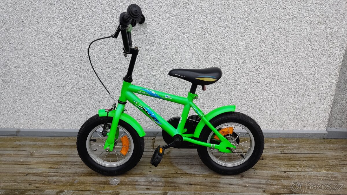Nabízím zachovalé dětské kolo Amulet, velikost "12", zelené barvy, plně pojízdné, drobné provozní oděrky, přední brzda na řídítkách, zadní brzda pedály dozadu