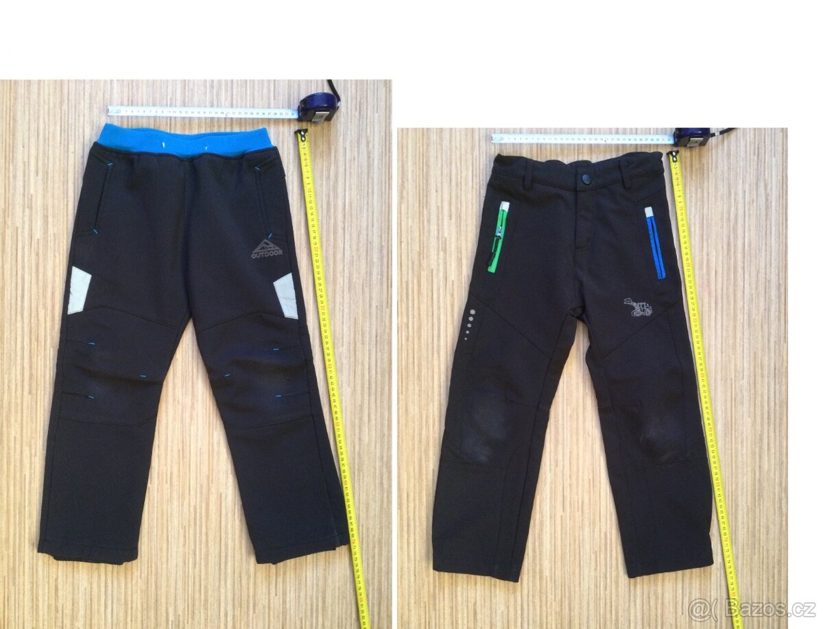 Softshellové kalhoty vel.104 - [27.2. 2026]Nabízím nošené softshellové kalhoty vel. 104. Délka 60 cm, délka vnitřní nohavice 43 cm, pas 2 x 23 - 29 cm. . Dvě boční kapsy. Sleva na sety.