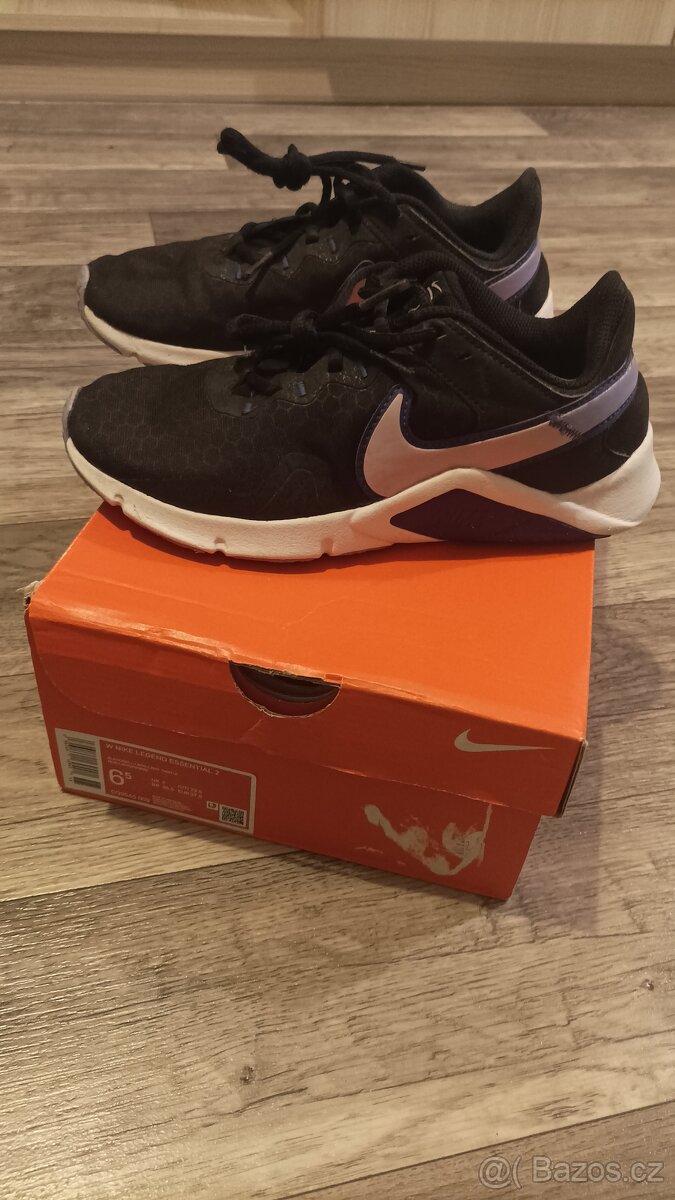 Pěkné tenisky Nike Legend Essential. Černo fialkové. Velikost 37,5. Vnitřní stélka 35,5 cm. Vhodné na běh nebo na běžné nošení. Velmi pohodlné. S origo krabicí. Vysoká PC. Nyní 350,- Kč.