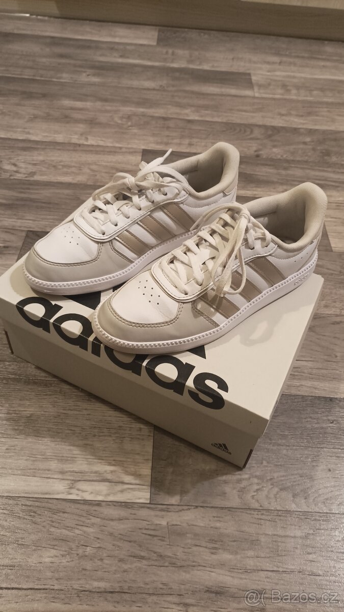 Top stav tenisky Adidas. Bílo zlaté. Velikost 36 a 2/3. Vnitřní stélka 23cm. Opravdu jako nové. Pěnová vložka uvnitř boty. Příjemné na nošení. Vysoká PC. Nyní 450,- Kč.