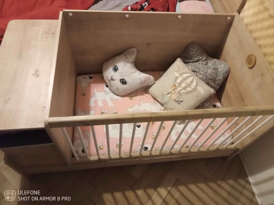 Pro miminka úložný prostor vedle lůžka, kam se schovají i lůžkoviny a nástavec na matraci, z poličky pak vznikne stoleček pro předškoláky a matrace se tak prodlouží. Včetně dvou dílů matrace (větší a menší přídavná).