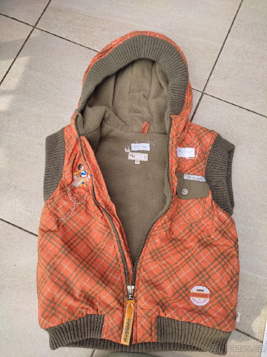 Prodám dětskou vestu vel. 104, oranžovo hnědou, délka 42 cm, šíře 38 cm