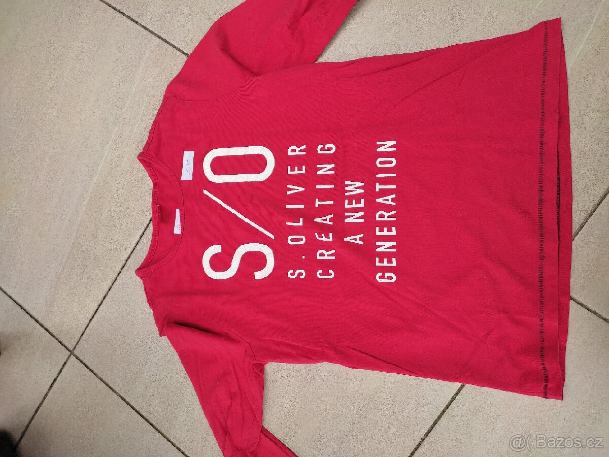 Prodám dětské triko s dlouhým rukávem, červené, vel. 140. Zn. s.Oliver, dovoz Německo, délka 51 cm, šíře 38 cm