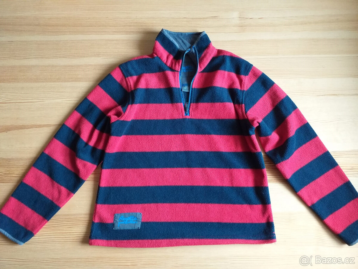 Fleesová mikina, černé a červené pruhy. Velikost 146. Délka 55cm. Barvy tmavší než na fotce.