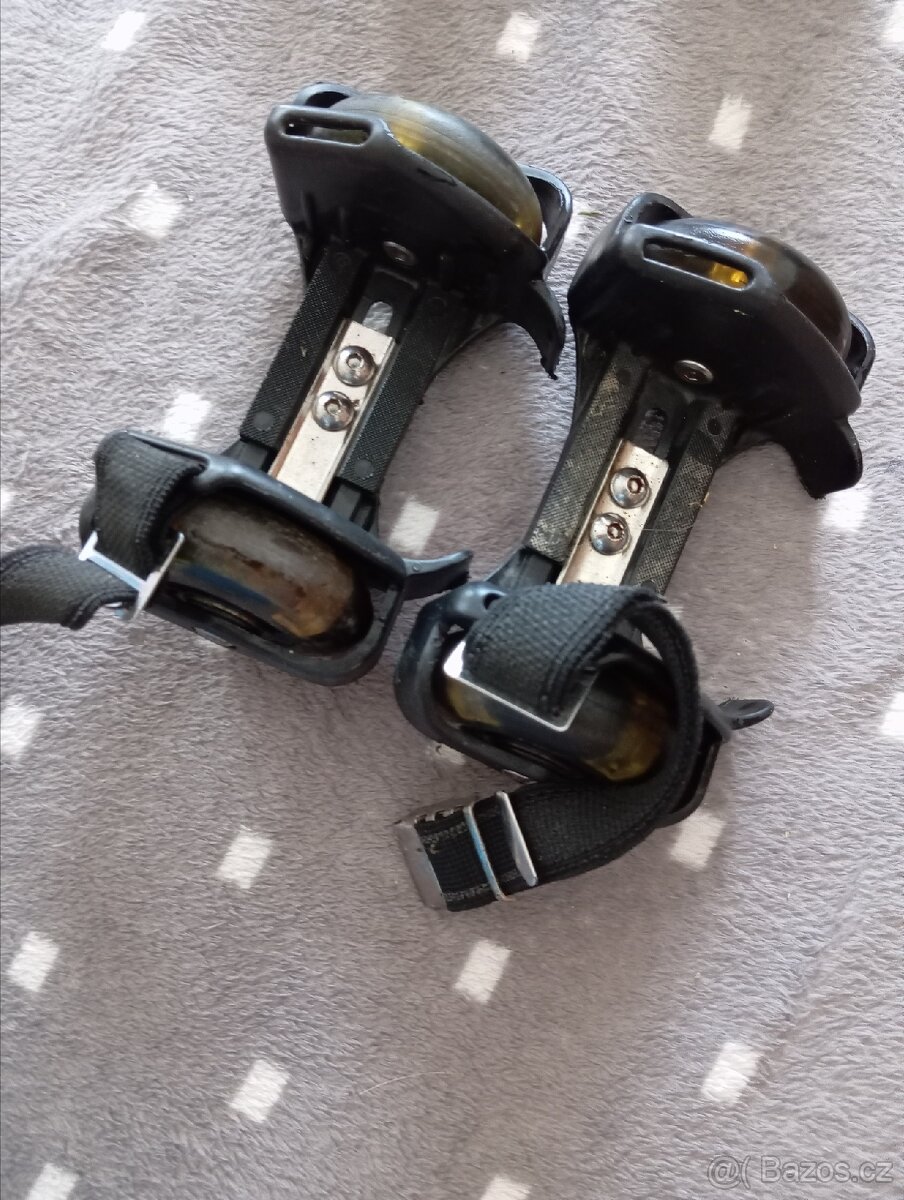 univerzální velikost, snadné upínání na botu, kvalitní ložiska, odolný PVC podvozek.