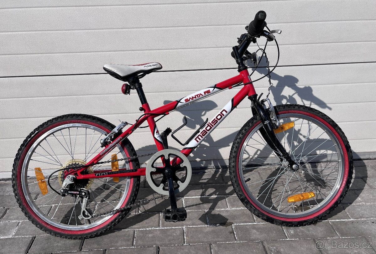 Prodám zachovalé dětské kolo Madison Santa Fe. Vzadu přehazovačka Shimano (6 převodů). Je potřeba časem seřídit brzdy (ale jsou funkční, dá se jezdit hned). Pouze osobní odběr Brno.