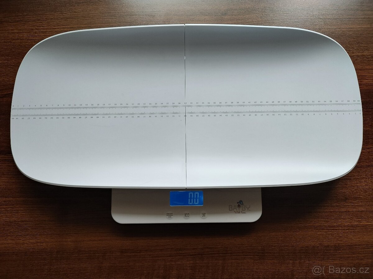Prodáme dětskou váhu Baby scale BSB4050 na vážení miminek a dětí. Pomocí vaničky s metrem lze vážit děti od narození v rozmezí 0-10kg a děti pak až do 40kg bez vaničky. Napájení pomocí 2x baterie AAA 1,5V. Funkce UNIT(jednotky - kg,oz,lb), TARE (nulování) a HOLD (přidržení hodnoty). Váha bez problémů či kosmetických vad. Stav nového produktu. PC 1200,- Kč nyní za 600,-Kč. Využívaná výjimečně, jako náhrada zapůjčené nemocniční váhy pro měření miminka.