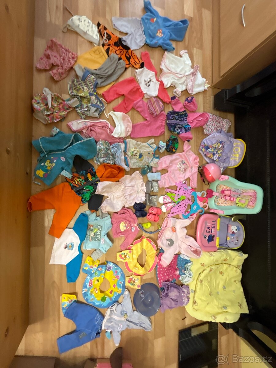 Oblečky pro holčičku i chlapečka dohromady: 9 kalhot,5 mikin,7 triček,2 župany, 2 kruhy s rukávky ,plavky,4 boty,sedačka s helmou na kolo, jídelní židlička, nosítko,záchod ,overal, 3 šaty, 2 dudáky , 2 kšiltovky, 6 čepic, 2 ponožky, bryndáček, 2 bodýčko na léto, 12 ramínek,polovina věcí skoro nepoužité