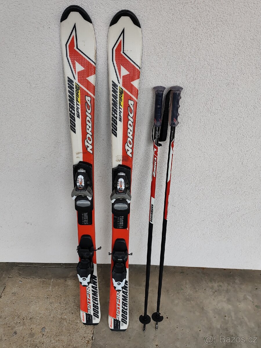 Lyže Nordica vc.holi, 104-65-89, rádius 9, délka 120 cm. Vázání nastavitelné.