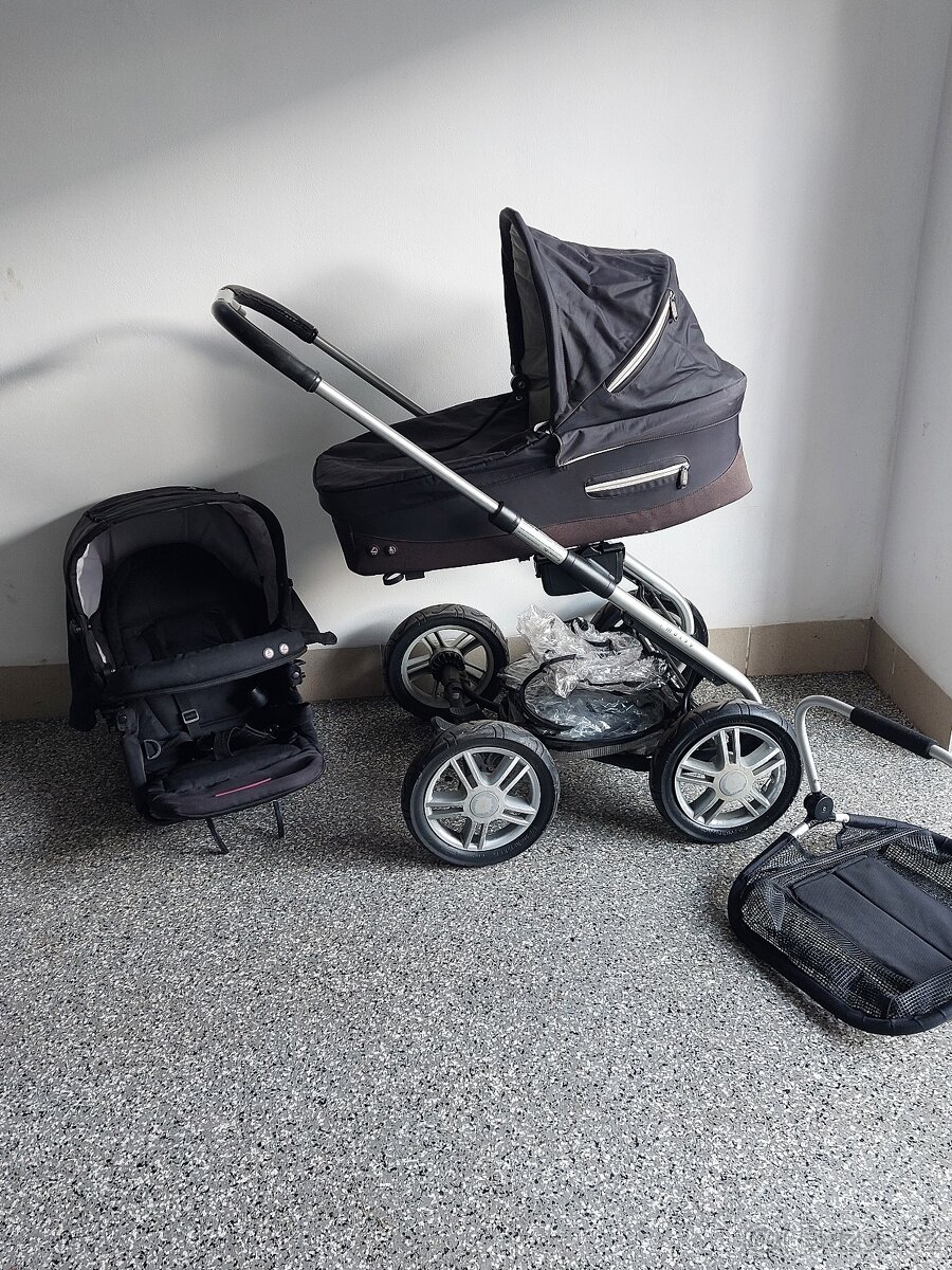 Prodám kočárek Mutsy urban rider. Podvozek, hluboká korba, sportovní nástavba, nánožník, nákupní košík, pláštěnky, sluneční clona. Zdarma skate pro staršího sourozence, který ovšem potřebuje opravu.