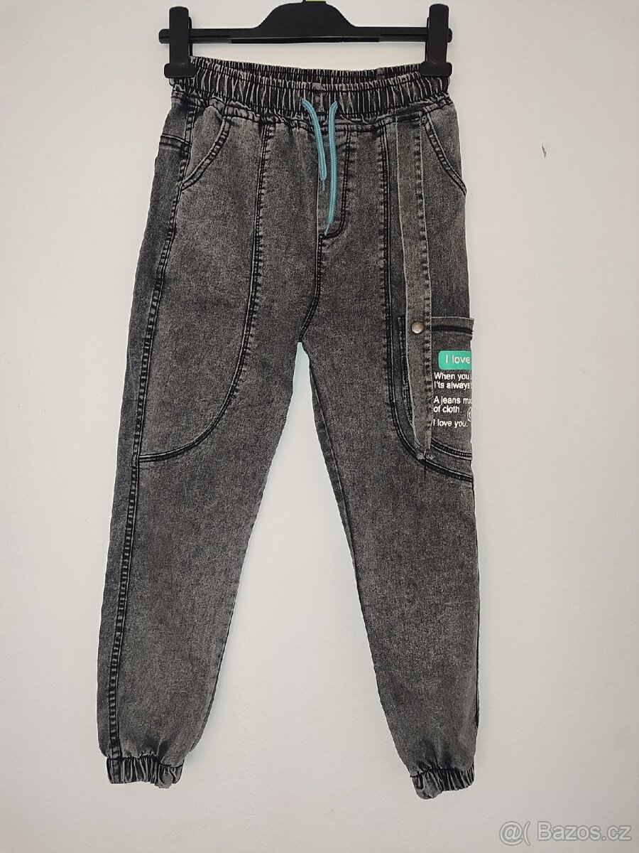 Džíny a joggery pro kluka 8–10 let, délka 80 cm. Nošené pouze jednou