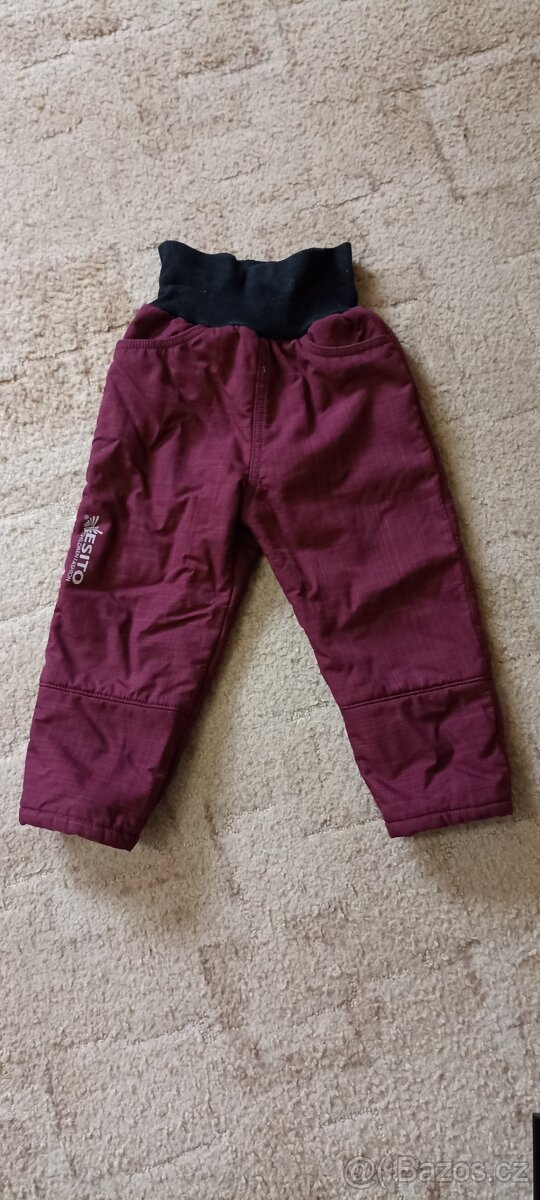 Prodám softshellové kalhoty značky ESITO se zvýšeným pasem. Vínové, zateplené bílým beránkem, vel. 98. Po jednom dítěti, velmi zachovalé, nepotrhané.