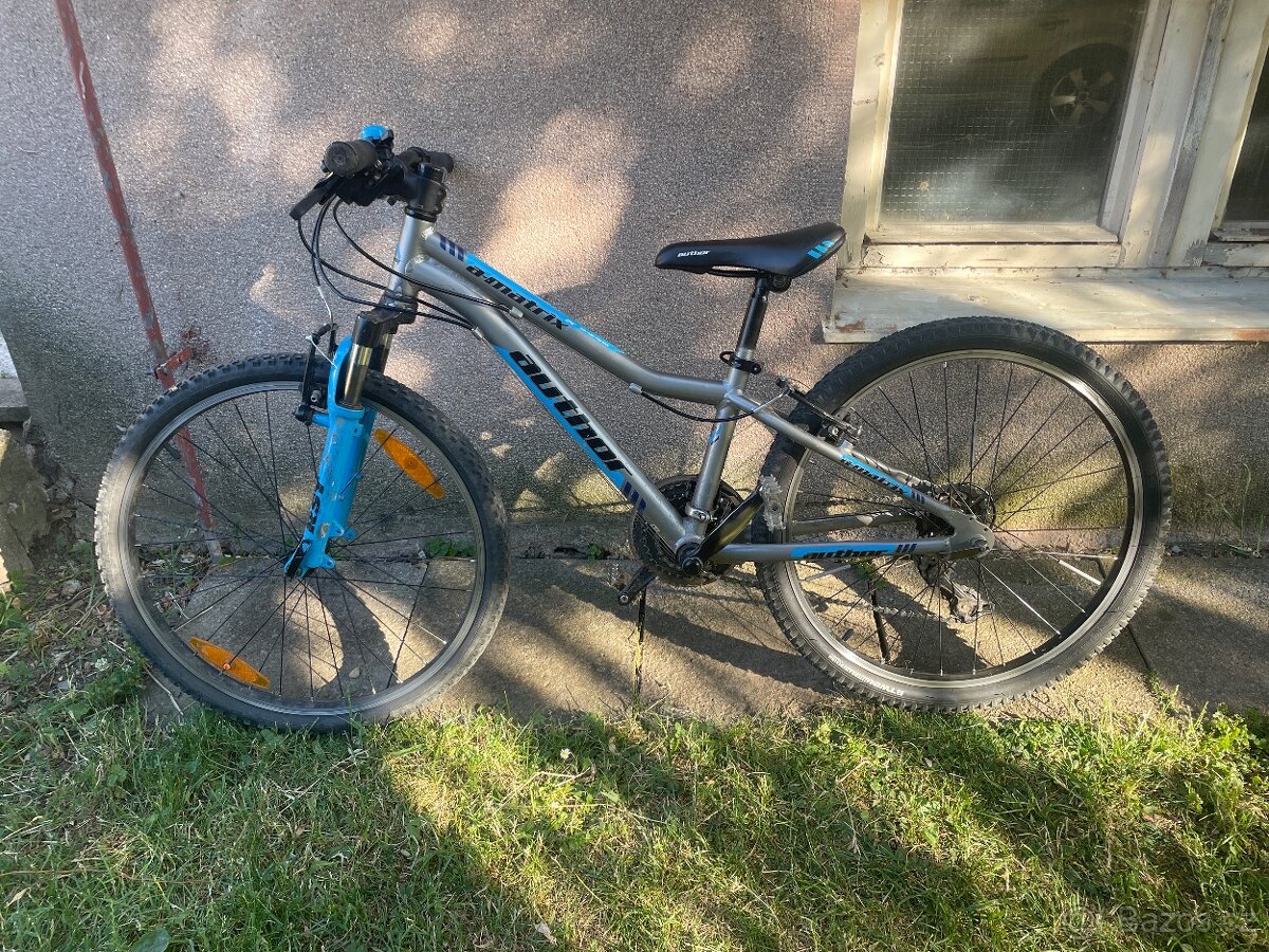 Upravene kolo pro deti 7-12 let. Vymena rzeni za páčkové Shimano, oproti původnímu s kroužkem. Řazení jde lehce jedním prstem. Syn kolo užil na zavodech Kovo Praha. Odlehčené šlapky, nově přepletené zdní kolo, velke a pohodlné gripy. Seřízené, funkční, stačí sednout a jezdit. Zakld kola, Author matrix 24.nový zadní plášť.
