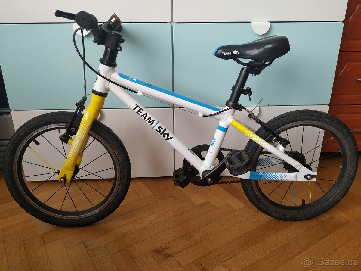 Prodám dětské kolo Frog 16". Lehká váha kola, velmi dobře ovladatelné. Přední i zadní brzda na řídítkách. Kolo ve velmi dobrém stavu, bez výrazných oděrek.