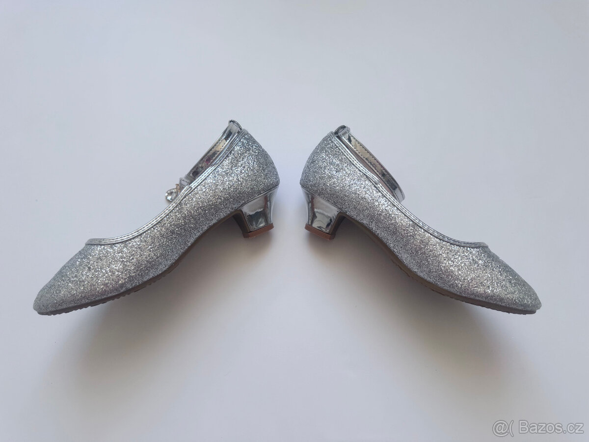 Prodám dětské lodičky třpytivé na malém podpatku, velikost EUR 33/34, délka vnitřní stélky 210 mm. Jako nové, nošeno minimálně.
