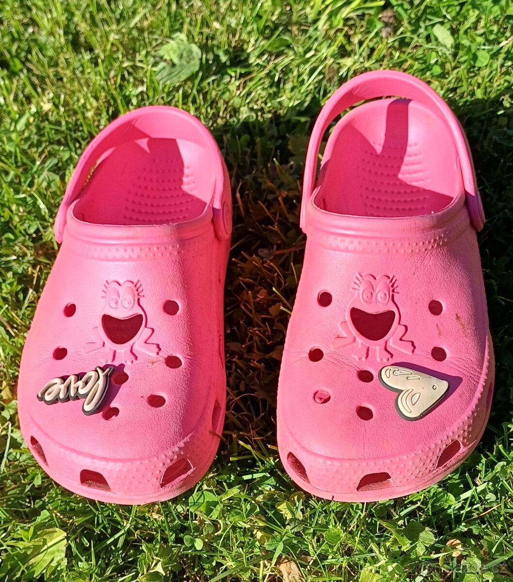 Prodám dětské gumáky a nazouváky: růžové nazouváky vel. 34-35, růžové nazouváky 33, zelené gumáky 29-30, růžové gumáky 32.
