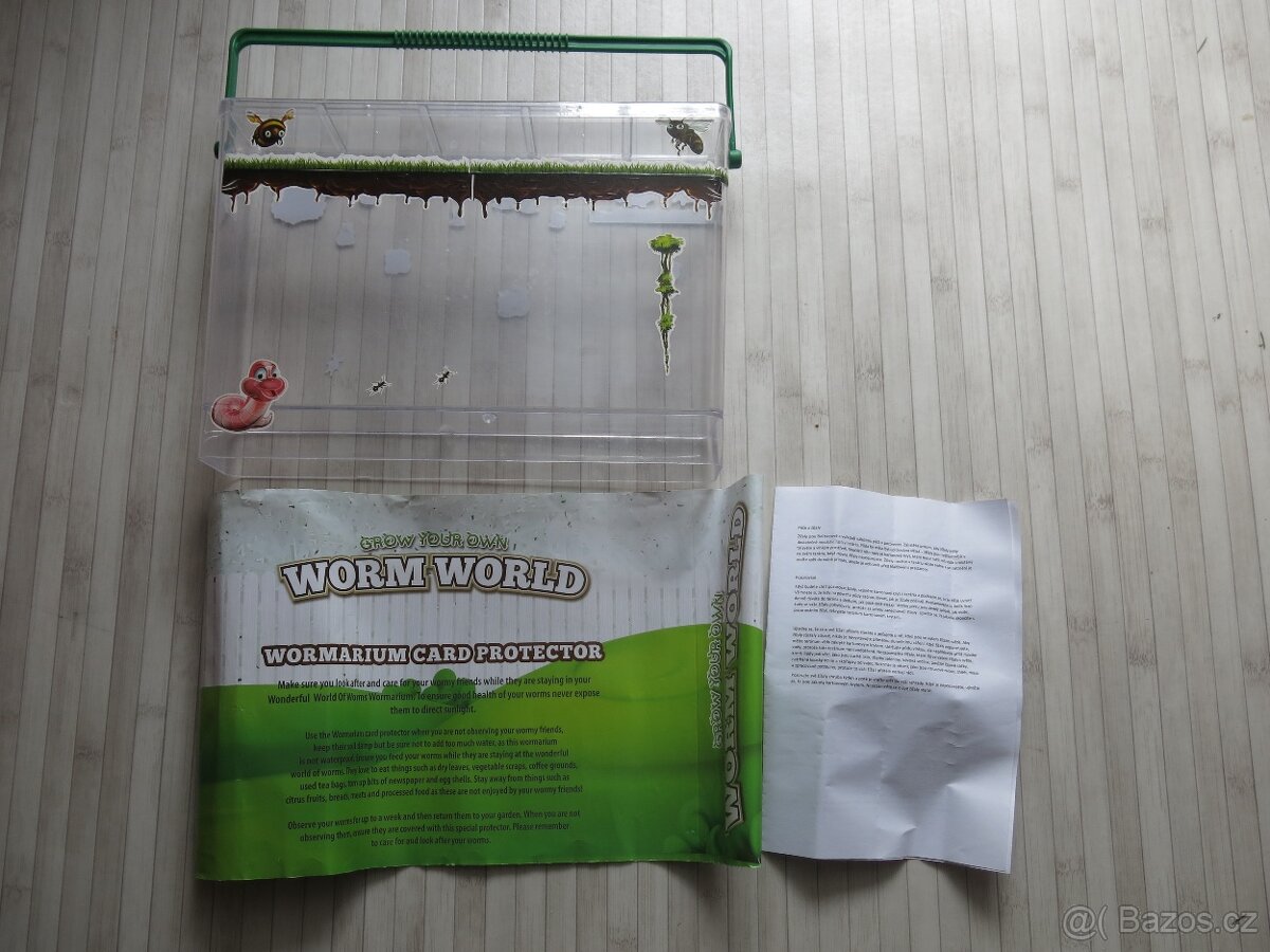 Žížalárium plastové s návodem, chybí barevné písky a potrava (osivo).