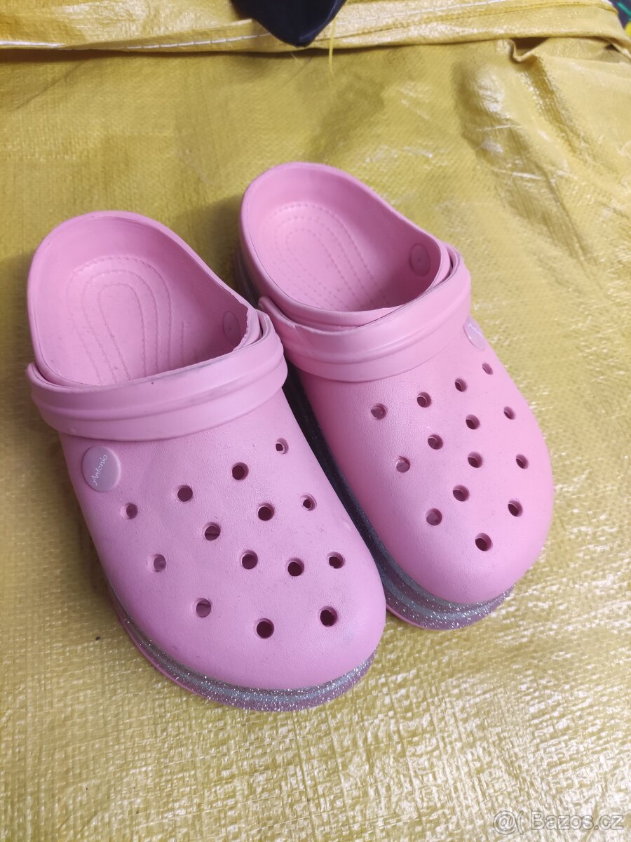 Nové pantofle, velikost uvedena 38, spíše 37, Antonio, na vyšší platformě, stříbro růžové třpytivé zdobení.